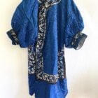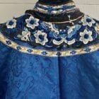 Extraordinaire manteau de noblesse chinoise , il existait différents types de manteaux selon la caste ou encore le poste occupé ou sa place dans la famille impériale. On retrouve sur ce manteau tous les signes et particularitées de la noblesse de cour impériale: types de broderies, forme des manches , et le bleu couleur céleste parsemé de fil et de boutons d’or ainsi que la soie utilisée .Il est entièrement doublée de soie sauvage en parfait état.
