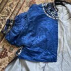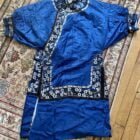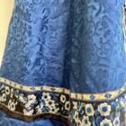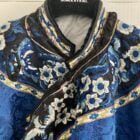 Soie damassé bleu en parfait état , boutons en cuivre doré ( tous présents).seuls les broderies présentent des usures mais mais sont fixées et ne tombent pas !