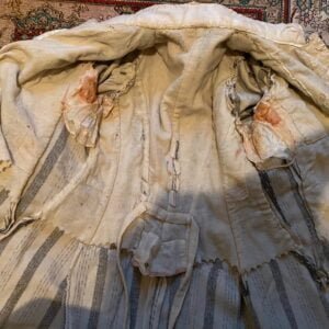 Il est en beau état mais le col est à refaire car le crêpe est déchiré, il faut noter quelque petits trous presque invisibles qui mériterait une légère reprise au fil noir .