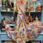Coupée dans le biais et belle ampleur. Adaptée dans les années 70 avec la pose d’une fermeture éclair dans le dos. Donc complètement portable.